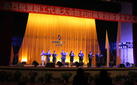 為了慶祝公司第一屆一次職工代表大會順利閉幕,活躍公司廣大職工的文化生活,讓員工提前度過一個歡樂、祥和的春節(jié),在公司黨支部和工會委員會的精心策劃下,在基層分會全體員工的的共同努力下,加班加點(diǎn)排練節(jié)目,為了使每個動作表演到位有效果,演出精彩上檔次,職工對節(jié)目一遍又一邊遍的進(jìn)行排練、修正,并籌集了演出的服裝、道具,以最高的表演水平充分展示金維公司員工的良好精神面貌。2013年1月19日下午16時,由公司黨支部和工會委員會聯(lián)合舉辦的慶祝公司第一屆一次職工代表大會順利閉幕暨“迎新春”文藝節(jié)目匯演大型晚會,在一片歡慶祥和的新春祝語聲中拉開了帷幕,公司總經(jīng)理陳德剛、副總理高勇、副總經(jīng)理魏偉、財務(wù)總監(jiān)高廣禮、生產(chǎn)總監(jiān)王智和公司工會主席劉海玉等領(lǐng)導(dǎo)和公司全體員工觀看了文藝節(jié)目演出活動。