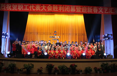 為了慶祝公司第一屆一次職工代表大會順利閉幕,活躍公司廣大職工的文化生活,讓員工提前度過一個歡樂、祥和的春節(jié),在公司黨支部和工會委員會的精心策劃下,在基層分會全體員工的的共同努力下,加班加點(diǎn)排練節(jié)目,為了使每個動作表演到位有效果,演出精彩上檔次,職工對節(jié)目一遍又一邊遍的進(jìn)行排練、修正,并籌集了演出的服裝、道具,以最高的表演水平充分展示金維公司員工的良好精神面貌。2013年1月19日下午16時,由公司黨支部和工會委員會聯(lián)合舉辦的慶祝公司第一屆一次職工代表大會順利閉幕暨“迎新春”文藝節(jié)目匯演大型晚會,在一片歡慶祥和的新春祝語聲中拉開了帷幕,公司總經(jīng)理陳德剛、副總理高勇、副總經(jīng)理魏偉、財務(wù)總監(jiān)高廣禮、生產(chǎn)總監(jiān)王智和公司工會主席劉海玉等領(lǐng)導(dǎo)和公司全體員工觀看了文藝節(jié)目演出活動。