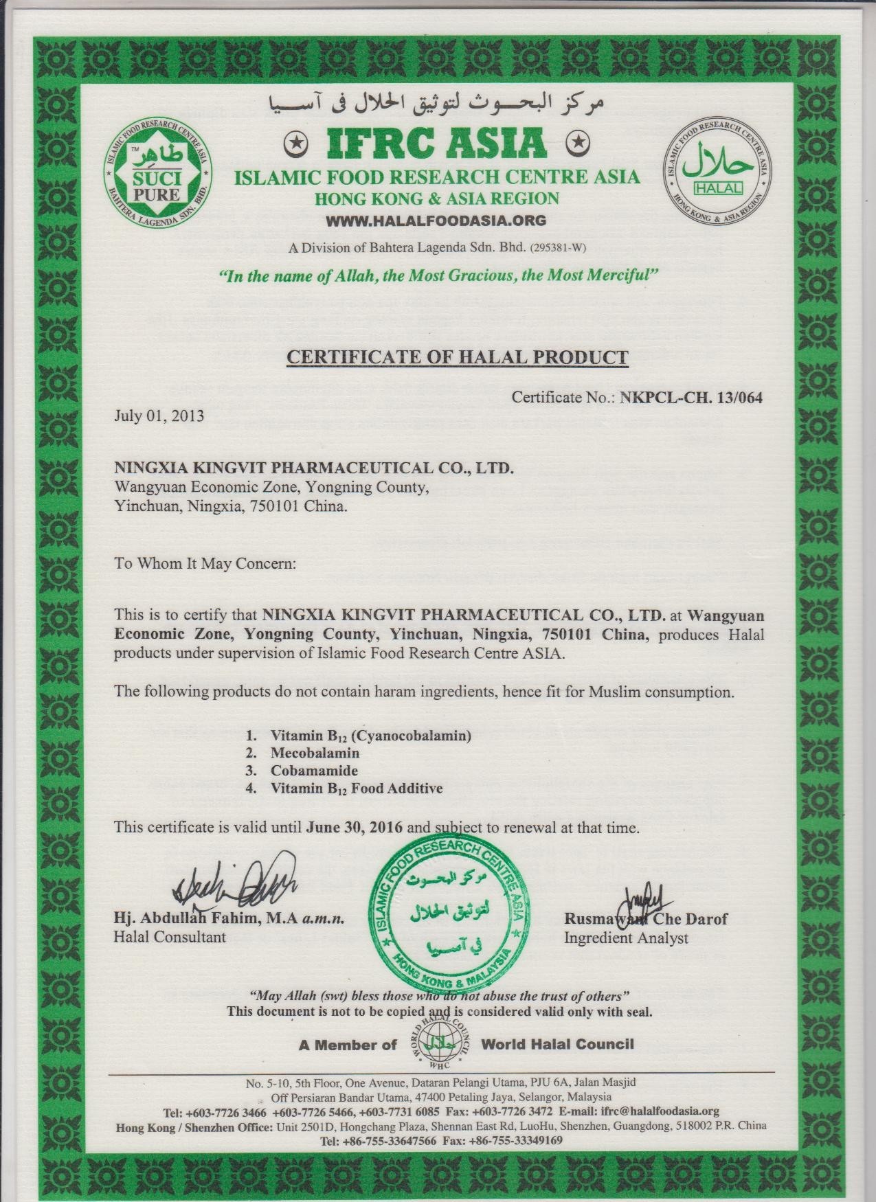 2013年08月27日,IFRC-halal認(rèn)證機(jī)構(gòu)派審核員易卜拉欣-蘭振強(qiáng)先生蒞臨我公司進(jìn)行IFRC-halal認(rèn)證的驗廠現(xiàn)場檢查。按照國際清真標(biāo)準(zhǔn)的通用規(guī)則,主要對我公司的管理體系、生產(chǎn)工藝、原輔料和廠區(qū)實際情況進(jìn)行了徹底的審查。在審查過程中審核員表示我公司能夠滿足IFRC-HALAL認(rèn)證的標(biāo)準(zhǔn)要求,也能夠持續(xù)有效地實施下去,并可達(dá)到既定的目標(biāo)。